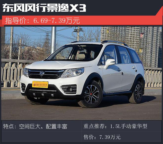 推薦理由:景逸X3只有兩款車型,兩車差價也僅為7000元,但豪華型會比舒適型多出很多配置。主要有電動天窗、真皮方向盤、多功能方向盤、駐車雷達、倒車影像、皮質座椅、中控彩色大屏、藍牙、音源接口等等。即便是汽配城,這些東西你也難以花7000元買到。所以豪華型的性價比高很多!