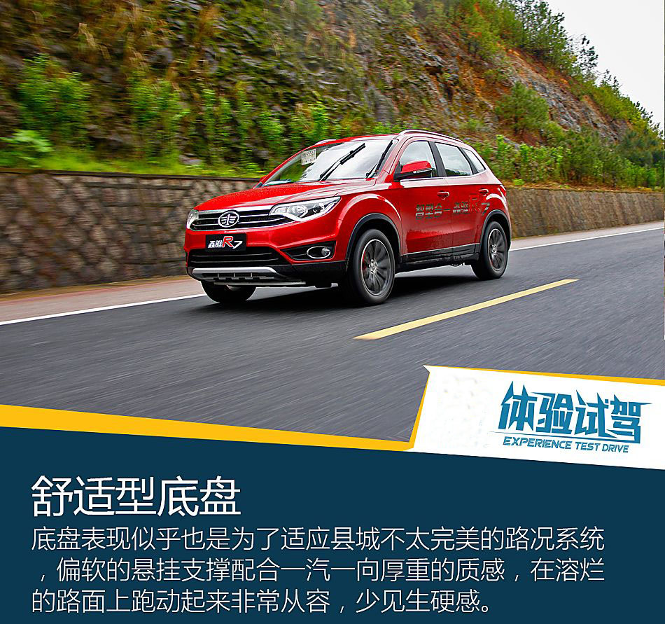 底盤表現似乎也是為了適應縣城不太完美的路況系統,偏軟的懸掛支撐配合一汽一向厚重的質感,在溶爛的路面上跑動起來非常從容,雖然動作較多,但少見生硬感。相比長安、海馬等車的底盤,它在中低速下更有生命力,動作有幅度但不死板,懂得處理一些情況。