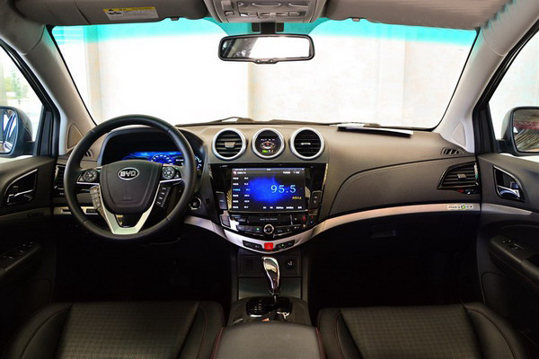 置身車內(nèi),比亞迪S7科技感極強(qiáng),黑色鋼琴漆證明該車同樣注重豪華氛圍。該車方向盤采用三幅式多功能方向盤,該方向盤集成了娛樂(lè)系統(tǒng)等快捷鍵。中控臺(tái)方面,中控臺(tái)頂部出風(fēng)口中間的小液晶屏顯示的是氣溫、海拔、指北針、以及PM濃度。中央的10.2英寸大屏是其內(nèi)飾中亮點(diǎn)之一,值得一提的是BuildYourDream云服務(wù)系統(tǒng),該系統(tǒng)可以用手機(jī)來(lái)同步獲取車輛信息以及為車輛發(fā)送導(dǎo)航信息等功能。配置方面,比亞迪S7應(yīng)有盡有,裝配了胎壓監(jiān)測(cè)、無(wú)鑰匙啟動(dòng)/進(jìn)入、ESP車身穩(wěn)定控制、電動(dòng)方向盤調(diào)節(jié)、座椅加熱/記憶等。另外,該車擁有PM2.5濾凈系統(tǒng),該系統(tǒng)擁有超高凈化能力,可在4分鐘之內(nèi)將PM2.5值由每立方米500微克降低至50微克以下。