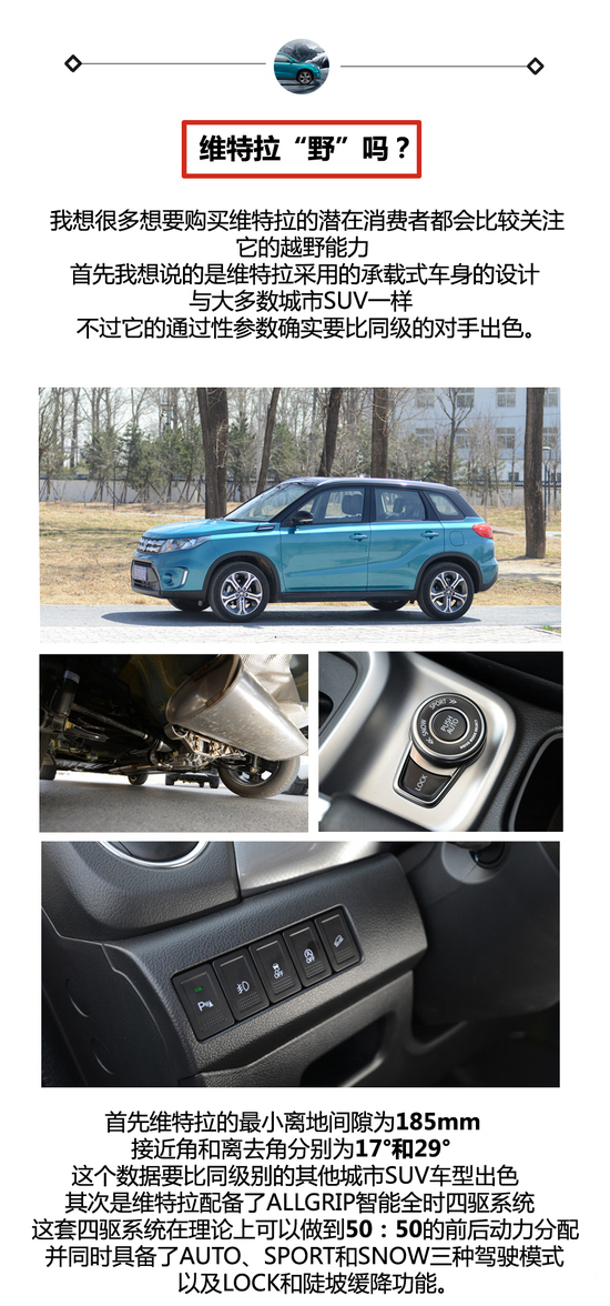 相比同級別SUV車型有著更好的通過性能是這兩款車型的賣點之一,它們雖然談不上能夠翻山越嶺,但它們的四驅系統讓勁炫和維特拉不會像一些偽SUV那樣面對爛路時畏手畏腳,可靠性和奈造的能力會更高一些,同時四驅系統對駕駛感受也能起到積極的作用。