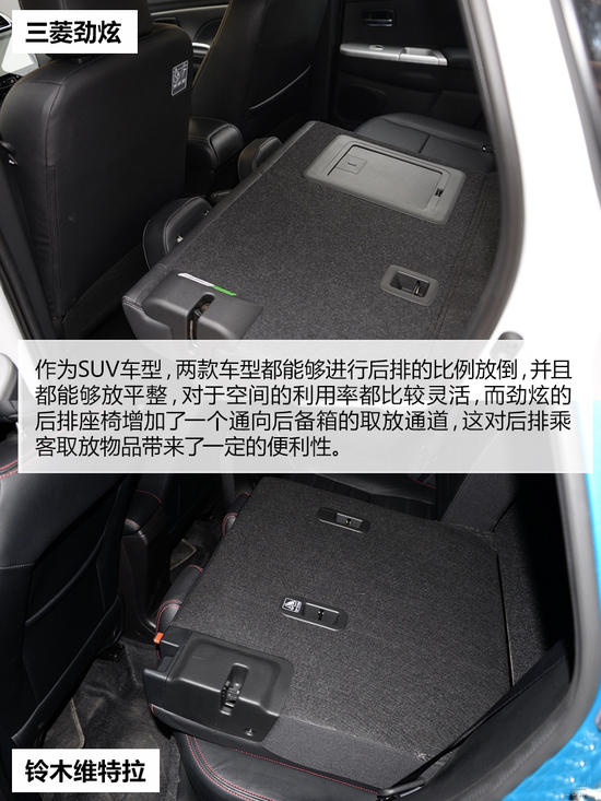 從兩車的乘坐空間來看,勁炫由于尺寸的優勢,后排的空間還是占了上風的,在后排儲物空間的靈活性來說,勁炫也要設計的更為人性化一些。