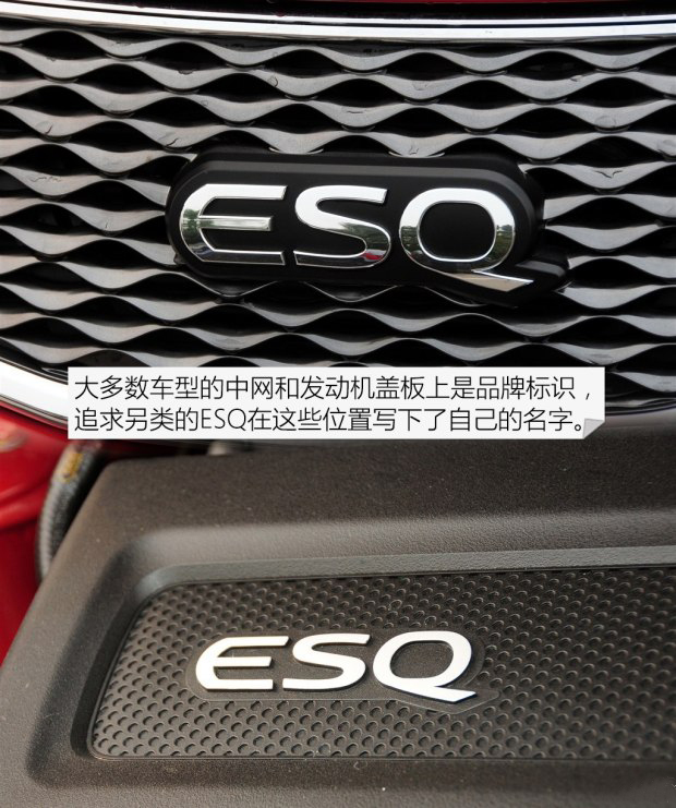 水波紋式的中網橫貫車頭,周圍以鍍鉻鑲邊,看著非常復雜。最能突出個性的設計是ESQ的分體式大燈組。造型犀利的示寬燈和轉向燈高高隆起,而近/遠光大燈擁有碩大的尺寸,侵占了中網的空間,日間行車燈在最下方,采用了LED光源。這種大燈組設計超越了主流審美價值,需要一定時間來適應。