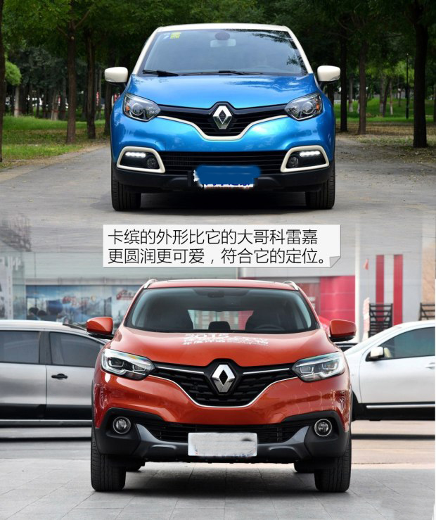 卡繽的外觀設計具有雷諾家族化特征,第一眼看上去和科雷嘉很像。但是再仔細看你會發現,相比于科雷嘉,卡繽少了橫貫中網的鍍鉻裝飾條,大燈造型更Q更可愛,霧燈處增加了裝飾條,像個眼鏡框一樣。這些細微之處的變化讓卡繽看起來多了一絲可愛,也會受到女性消費者的關注,也更符合它的車型定位,年輕,時尚。
