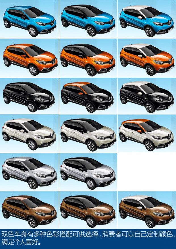 進口雷諾在中國市場上的車型并不多,大多都是小眾的個性車。卡繽于2015年6月登陸中國市場,售價區間為13.98-18.88萬元。作為一款原裝進口的小型SUV,卡繽價格已經接近了眾多合資小型SUV價格,而它最大的優勢就是可定制化的車身顏色,滿足不同消費者的需求。