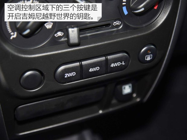 2W、4WD和4WD-L這三個按鍵是吉姆尼的精髓。吉姆尼使用的分時四驅比適時四驅結構更可靠,越野能力更強。通過這三個按鍵可以實現兩驅、四驅和低速四驅三種模式的切換。兩驅模式下吉姆尼為后輪驅動,在保持直線且車速不超過100km/h的情況下,可以切換到四驅模式。如果你想繼續切換到低速四驅模式,需要將車輛完全靜止,這也使它能夠面對更多復雜路況的挑戰。