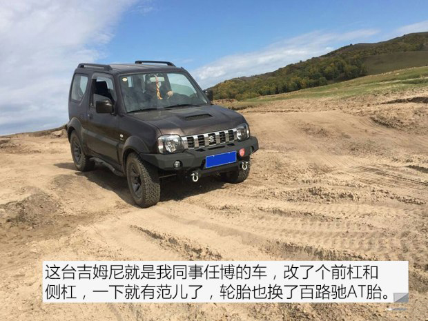 我的同事任博(點擊進入編輯博客)就是一個越野愛好者,前兩天剛提了一臺吉姆尼,這臺車吸引他的就是短軸越野能力和強大的改裝潛力,而且價格也比常規硬派SUV實惠不少,是個很好玩的車。他剛買回來就改了個前杠和側杠,越野味兒更濃的同時也更加堅固,還換了4條百路馳AT胎,能夠適應更復雜的路況,對這臺車有興趣的朋友可以到他的編輯博客(點擊進入編輯博客)和他交流。