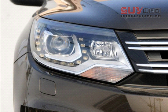 在沒有升級之前,途觀使用的是傳統(tǒng)的淚滴形大燈,除了是氙燈、具備透鏡,其它的再無任何吸引人的地方。而2013款途觀外觀最大的變化就是全新的大燈組,15顆LED燈組成的日間行車燈配合略顯方正的近光燈輪廓,看上去精神、利落了許多。大燈的外部輪廓也告別了圓潤,整體透著爽朗符合SUV的風(fēng)格。