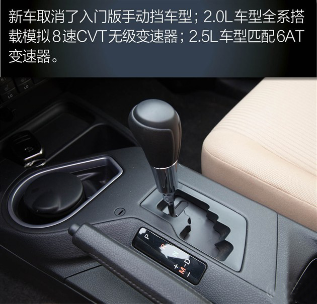 | 發(fā)動機參數(shù) | 2.0L:最大輸出功率111kW,峰值扭矩192Nm 2.5L:最大輸出功率132kW,峰值扭矩234Nm | |