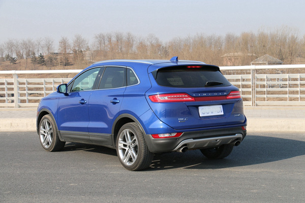 林肯MKC采用了最新的家族式設計風格,標志性的“飛翼”式進氣格柵與大燈連成一體看起來非常有力量。車身尺寸相較同級別競爭對手略勝一籌,第一眼看過去完全不覺得這是一款緊湊型SUV,即使與一些中型SUV放在一起也不會顯得很小。尾部貫穿一體化的尾燈與后備箱尾門完美契合,再加上雙邊雙出的排氣管及銀色下護板看起來視覺效果非常出色。