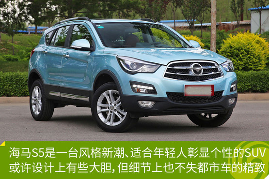 海馬S5是一臺造型及色彩新潮、適合年輕人彰顯個性的SUV。外型設計上非常大膽,經過特別設計的大燈顯得十分別致,大尺寸的倒梯形格柵和巨大的品牌LOGO就更是毫無收斂可言了。
