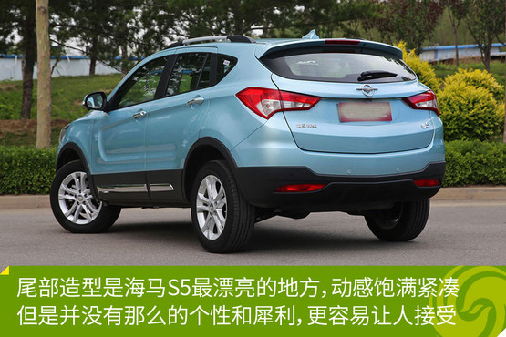 車身側面內凹的設計起到了很好的過渡作用,將上部的腰線與下部的棱線自然地連接起來,不僅很好的處理了線條,也凸顯了S5的力量感。尾部造型是海馬S5最漂亮的地方,動感飽滿緊湊,但是并沒有那么的個性和犀利,相信可以贏得更多朋友的認可。