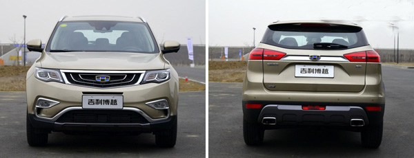 外觀方面,博越擁有造型感很強的前臉設計,家族式漣漪狀進氣格柵得以保留,在吉利博越上其棱角更加吸納名,散發著力量感。與博瑞相同,博越的進氣格柵內部同樣設計有“回”紋裝飾,這是博越上隨處可見的中國風之一。博越車尾的造型頗有幾分美系SUV的風格,提高的“臀線”、車頂的擾流板、雙邊共雙出的排氣布局都體現出較強的運動感。新車后保險杠采用了雙色設計,銀色的護板不僅讓車尾顯得更加時尚,也增添了幾分野性美。