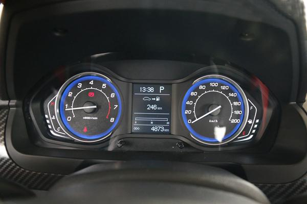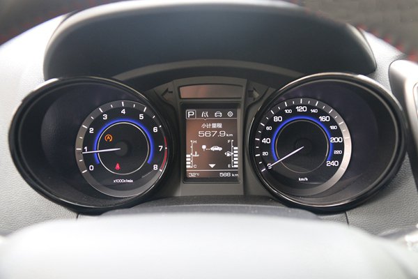 內飾中控面板多采用硬質材料,儀表臺頂部采用軟質材料包裹,雖然材質一般,但多彩個性的配色和價格才是其吸引消費者的重點。方向盤采用時下流行的三幅式設計,手感較小,兼顧了女性消費者的需求,底部網格化設計突顯運動風格。采用炮筒式儀表,黑底白字的表盤清晰易讀,紅色指針比較醒目。