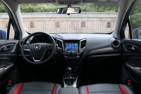 內飾設計方面,長安CS15延續了家族化的科技、時尚元素,同時還借鑒了長安汽車目前熱銷的CS75車型的整體布局。該車同樣采用了大尺寸的液晶顯示屏、三幅式多功能方向盤 等,不過在擋把等一些細節設計上還是有所區別的。儀表中間的屏幕為單色屏,用來顯示瞬時油耗,油量,水溫等。
