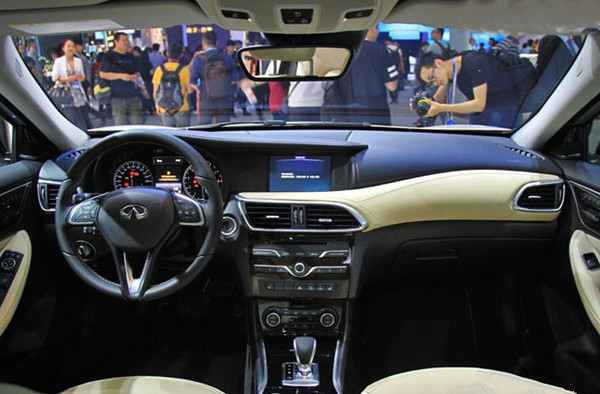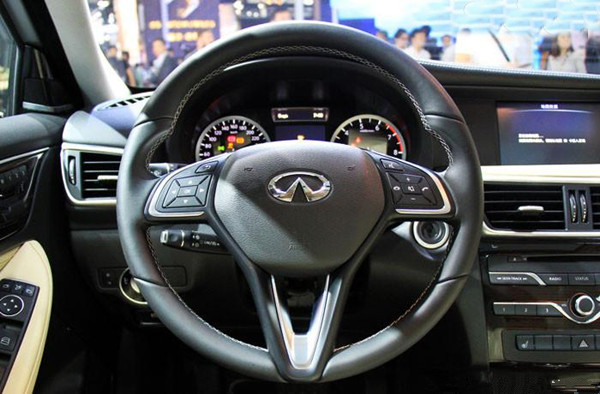 內(nèi)飾方面與外觀形成了呼應(yīng),大量的線條的運(yùn)用使新車層次感十足。采用三幅式多功能方向盤,仔細(xì)端詳過后,新車方向盤的造型與奔馳很像。儀表盤方面采用雙圓形的設(shè)計(jì),配色為黑底白色。中控臺(tái)方面采用了英菲尼迪家族式雙屏的設(shè)計(jì),整體看上去科技感十足。該屏幕集成了英菲尼迪InTouch系統(tǒng)。