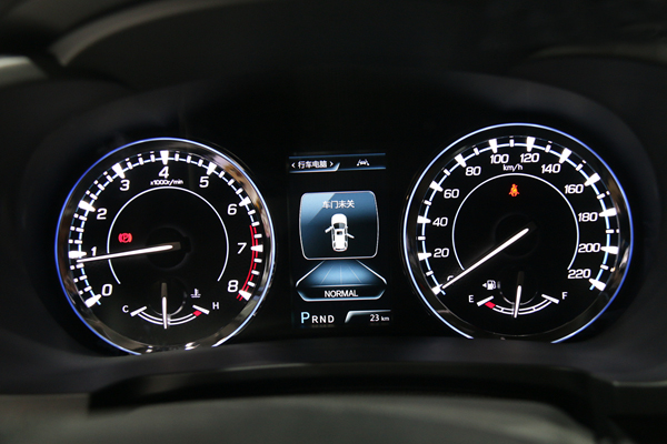方向盤方面采用了 三幅式設計并且帶有多功能按鍵。方向盤的握感粗壯也十分舒適。儀表盤方面采用了雙圓設計,中間小液晶屏集成了非常豐富的信息。