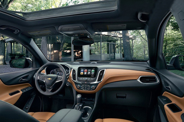 內飾方面,雪佛蘭Equinox的內飾造型和新款的邁銳寶XL較為相似。棕色和黑色的的搭配也讓其看起來更加的豪華,更有質感。配置方面,新車還將配有碰撞預警系統,防碰撞自動制動系統,車道偏離報警等,同時新車還將支持蘋果的CarPlay和安卓Auto的手機互聯系統。