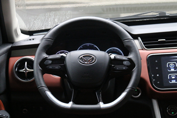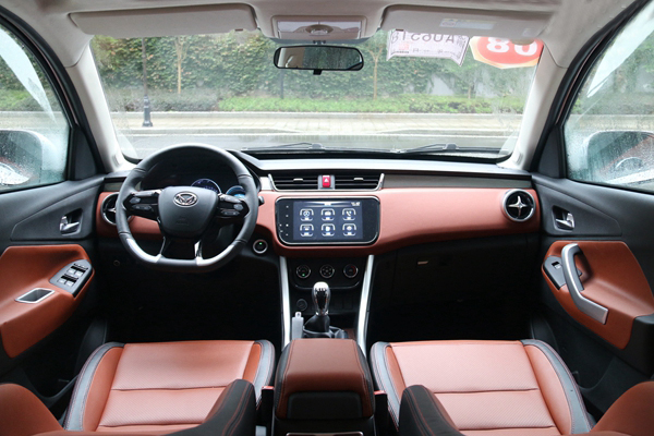 內飾提供全黑和黑棕兩種選擇,整個儀表臺的設計線條參照了“牛角”的元素,材質受限于成本原因為硬塑料,整體做工和設計還是有種廉價感。中控采用8英寸觸摸大屏,可以支持導航、多媒體、手機互聯等功能,但在實際使用中并不是很方便,面子工程大于實用性。