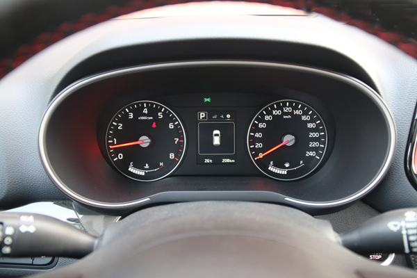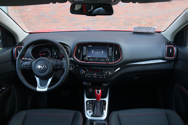 內(nèi)飾部分的布局和K4如出一轍,家族樣式的設(shè)計(jì)元素充斥整個(gè)內(nèi)部,車內(nèi)紅色的擋把、紅色的縫線以及紅色的安全帶突顯濃郁的駕駛風(fēng)格。儀表盤造型樸素,基本行車信息陳列其中,沒有花哨的設(shè)計(jì)給人清爽利落的感覺。