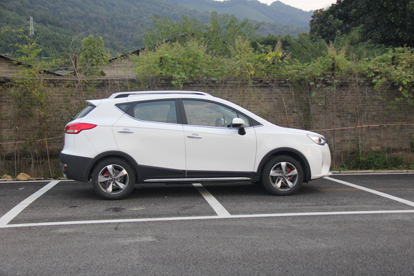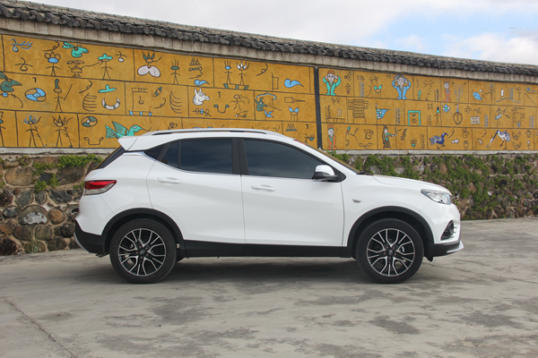 車身側面運用較多的線條修飾,犀利的上挑腰線和厚重的下腰線使整個側面顯得比較硬朗,A柱高高隆起提供了充足的駕駛空間和開闊的視野。長寬高尺寸為:4160*1810*1670mm,軸距為2560mm。