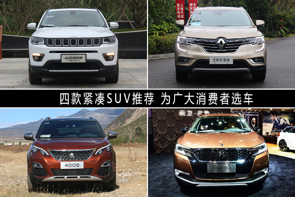 【SUV中國(guó)網(wǎng)】在SUV細(xì)分市場(chǎng)中,緊湊型SUV一直都是最受大家關(guān)注的,也是競(jìng)爭(zhēng)最激烈的單一車(chē)型。或許是想擁有更舒適的乘坐空間及更大的載物空間,現(xiàn)在越來(lái)越多的人轉(zhuǎn)為關(guān)注SUV車(chē)型了。而如果提起緊湊SUV,想必大家最先想到的多半是途觀、CRV、翼虎等等車(chē)型,那么當(dāng)然不只是這幾款車(chē)型。今天就給大家?guī)?lái)另外四款緊湊SUV車(chē)型,也為廣大消費(fèi)者推薦一些選擇。不過(guò)由于剛剛上市的新車(chē)型,有的車(chē)型甚至出現(xiàn)了加價(jià)提車(chē)的情況,今天小編就向大家推薦幾款緊湊SUV,讓你大可不必非選上述那些車(chē)型,還有這幾款車(chē)值得你選,也為廣大消費(fèi)者選車(chē)。這幾款車(chē)就是全新Jeep指南者、DS 6、科雷傲、標(biāo)致4008。