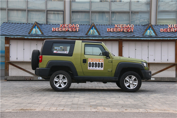 側(cè)面輪廓像極了牧馬人,尤其是灰黑色粗狂的套件,而擁有37°的接近 角以及33°的離去角、離地最小間隙為210mm讓BJ40保證了越野的通過(guò)性。