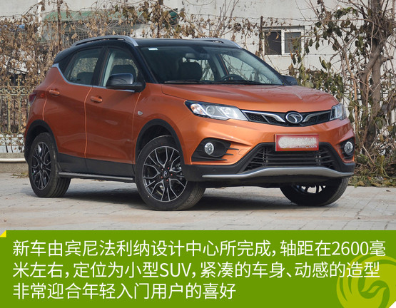 紳寶X25定位為一款小型SUV,其在外觀方面采用了大嘴式的前臉設計。前大燈組造型較為犀利,并配備有帶透鏡大燈。此外,新車下進氣格柵造型夸張,并且新車還配備了黑色的四輪輪眉以及側裙,營造越野風格。