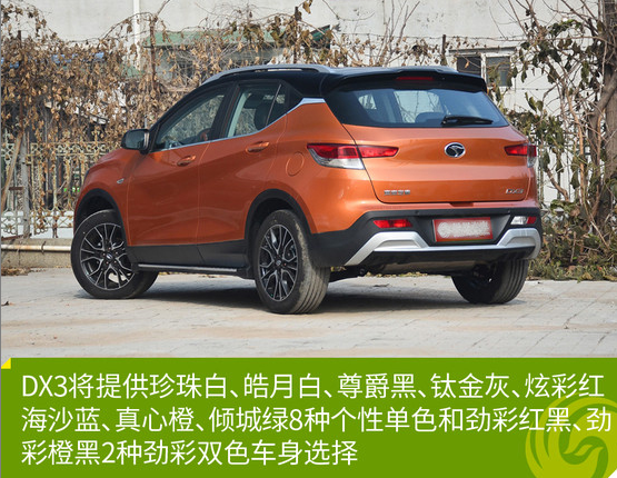 東南DX3以DX概念車為藍本打造而來,外觀造型由賓尼法利納設計,采用流行的懸浮式車頂,車身線條動感、硬朗,并且提供車頂與車身雙色的搭配,整體外觀非常時尚。前臉部分,棱角分明的前大燈與飛翼式的格柵也使前臉顯得非常精神。新車的車身尺寸為4354×1840×1670毫米(不含行李架1654毫米),軸距為2610毫米。