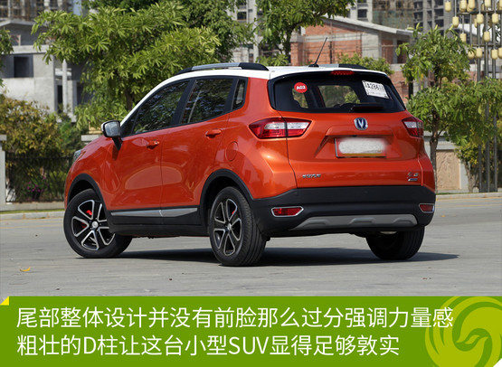 從外觀整體上看,長安CS15并沒有太多兄弟車型上的基因,好比前臉就沒有采用長安的家族式設計,而是運用了與CS95概念車風格類似的菱形設計,呈放射性擴散,與大燈緊密銜接,中間的長安V標格外顯眼。尾部整體設計沒有前臉那么過分強調力量感,粗壯的D柱讓這臺小型SUV顯得足夠敦實。尾燈的設計與頭燈相呼應,燈組內部采用鹵素光源。
