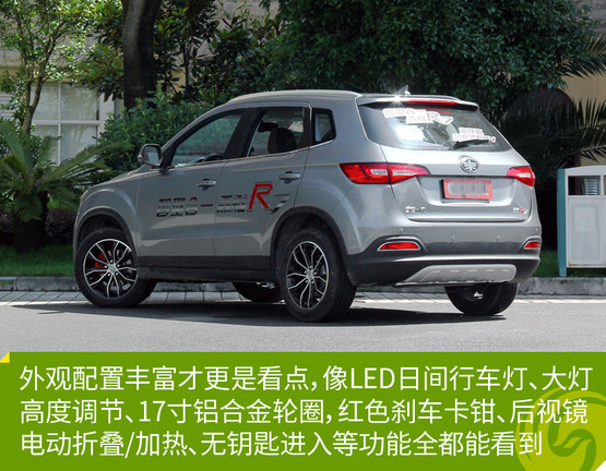 外觀方面,森雅R7采用德國大眾控股汽車設計公司IDG擔當外觀設計,前臉采用全新飛翼式大氣前格柵,加以鍍鉻裝飾點綴,越野范兒十足。此外,鷹眼和鷹嘴造型的頭燈和尾燈,通過車身側面的銳利腰線相互連接,為整車營造出動感的視覺效果。車身側面采用貫穿式高腰線和大輪拱線設計思路,配合17寸炫酷造型的鋁車輪轂。車身尾部采用運動型擾流板、銀色鍍鉻飾板等元素,與前臉形成呼應。