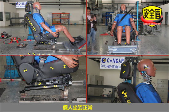 鞭打試驗:假人坐姿正常,安全帶緊扣,具體情況還需根據假人身上傳感器及高速攝像機進行綜合分析,具體受傷情況還需等待試驗結果分析。