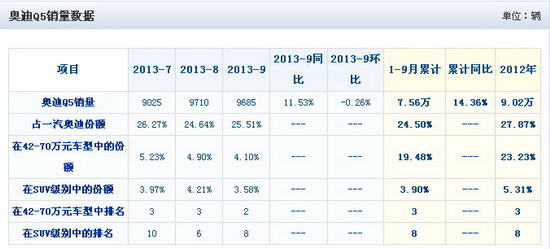 奧迪Q5作為豪華品牌的主流SUV產品,在國內擁有非常高的認知度,空間、配置和品牌形象都讓消費者非常滿意。在去年,銷量已經達到了了9萬輛之多,而今年截止到9月份,超過9600輛的成績也算是還不錯。另外據悉,雖然現在店里的現車并不多,但是優惠幅度確實很喜人。