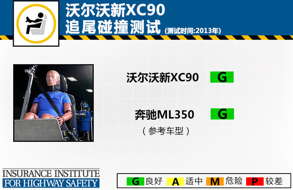 在模擬追尾碰撞時對車內乘員頸部保護的測試中,沃爾沃新XC90和奔馳ML350的座椅和頭枕均可以為乘員提供充分的防護,避免頸椎過度屈伸的損傷。