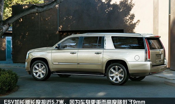 新款凱雷德的設計師深深地知道,他們的客戶需要什么,并不是能上天入地的強力四驅,而是一個威武霸氣、一出場就能亮瞎全場人雙眼的大氣外觀。全新的進氣格柵、前后立式LED燈組、到處閃耀的鍍鉻件,所以設計師強化了凱雷德的外觀,新凱雷德提供標準軸距版和加長版ESV車型,前者車身尺寸為5180×2044×1889mm,軸距2946mm,看起來還算比較常規;而后者軸距加長了356mm達到3302mm,車身也增加了518mm達到5698mm,十足的巨無霸身材,兩者寬度相同,但ESV版因為車身更重而高度降低了9mm。