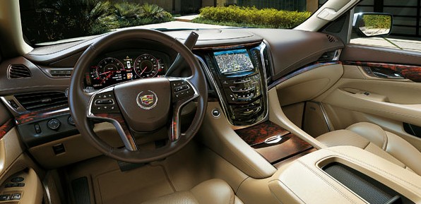 全新凱雷德較多內飾采用了手工縫制,相比老款的傳統內飾要時尚豪華許多。實木飾板配合鋼琴漆和鍍鉻亮條打造出與XTS相似的中控臺看起來很上檔次。車內的CUE系統,采用8英寸電容觸控屏幕和手勢識別,操作就像ipad一樣方便,另外凱迪拉克加入了觸感震動功能,使用起來更接近真實按鈕的感受。儀表盤的位置也被一塊12.3英寸液晶屏取代,看慣了一種風格的儀表盤?換一個好了,就這么簡單。