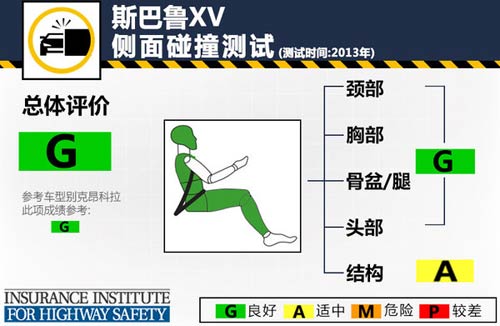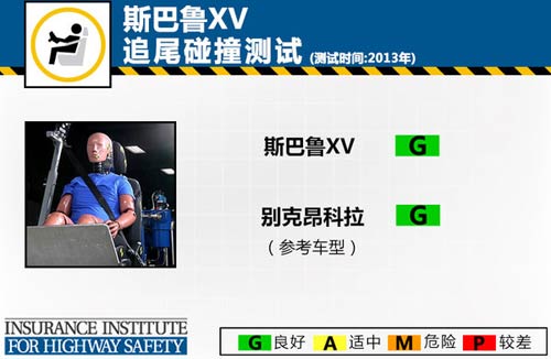 頂部碰撞主要測試車輛發生翻滾時車型結構的變化,成績可反映出側翻時車身結構的安全性,在這項測試中斯巴魯XV和別克昂科拉均取得了良好的成績,為車內乘員提供充分的保護。