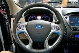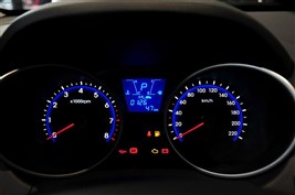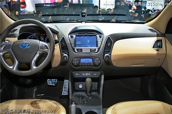 新款現(xiàn)代ix35的內(nèi)飾繼承了現(xiàn)款車型的設(shè)計(jì),造型基本未變。四輻式真皮方向盤(pán)手感很好,多功能按鍵也為行車提供了便利。雙炮筒式儀表盤(pán)造型動(dòng)感,藍(lán)底白字顯示清晰,讀取方便。配色方面,ix35提供了深淺兩種配色,淺色內(nèi)飾家居氛圍較濃。新iX35的做工延續(xù)了韓系車的講究工藝,即使材質(zhì)是硬質(zhì)塑料,經(jīng)過(guò)防滑處理后,塑造了不錯(cuò)的手感。