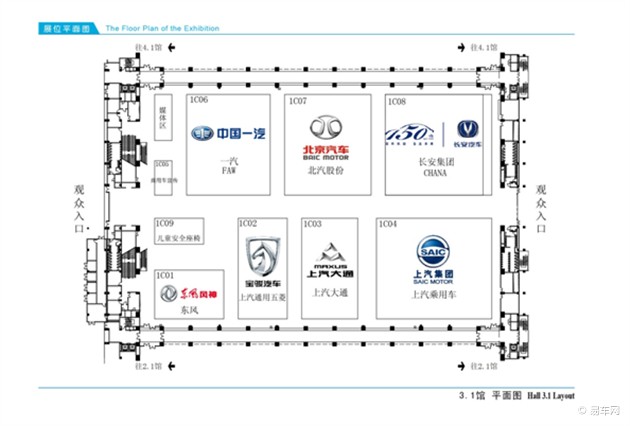 3.1館包括:中國一汽、北京汽車、長安集團、東風風神、上汽集團品牌