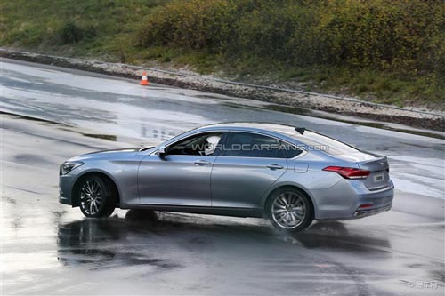 近日,新一代現代勞恩斯(Rohens,除中國外的市場叫Genesis)在紐伯格林賽道的無偽裝諜照曝光。換代車型將采用全新的前臉造型。除了后驅形式,其還可選裝四驅系統。有消息稱,這款與寶馬5系和奧迪A6L相抗衡的新車或將于廣州車展亮相。