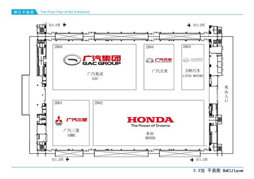 2.2館共有5個展區,包括本田、廣汽三菱、廣汽集團、廣汽吉奧、力帆汽車展區。各品牌重點車:吉奧全新緊湊車、傳祺GA3改款、力帆720 1.5L、力帆X50。