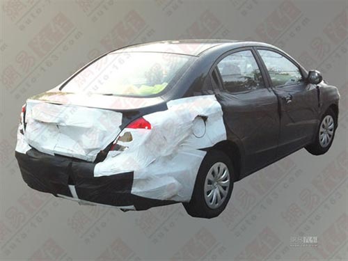 諜照中的車型外表采用一層偽裝,但設計與上海車展中展出的車型一致。六邊形的網格狀進氣格柵,頗有家族特征。新車長寬高分別為4275/1710/1505mm,軸距為2490mm,車身長度和軸距相比同悅要明顯增加。(同悅車身長寬高分別為4155/1650/1445mm,軸距為2400mm)。尾部看上去比較中庸,水滴形的尾燈,牌照框上方的鍍鉻裝飾,增添時尚感。后保險杠上還有兩個倒車雷達探頭,對此只能說有比沒有要強。