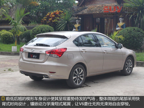 作為東南汽車的首款兩廂掀背型都市轎車,V6菱仕在外觀設計上采用了國際先進的制造工藝,無論是V系家族三格柵V型雙羽式前臉,還是裝點在兩側的三瞳雕眼大燈以及標配的高亮度奢華LED日間行車燈,都是對東南品牌精髓、產品風格的延續(xù)。流線型車身線條展現(xiàn)矯健有力的身姿,前低后翹的楔形車身設計使其呈現(xiàn)蓄勢待發(fā)的氣場,整體微翹的尾部采用快背式時尚設計,鑲嵌動力學滑翔式尾翼,讓V6菱仕無拘無束地自由穿梭于西雙版納的熱帶叢林之中。