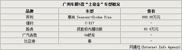 在本屆廣州車展,超豪華品牌以及改裝車型雖然仍成為主要關注焦點,也許是由于“土豪金”一詞的興起,許多廠商也在車身顏色上做足了文章。雖然土豪金顏色已是在很早之前便出現了(如1935 Bugatti Type 57 Grand Raid Roadster車型等等),但是由于蘋果手機iPhone5S發布香檳金色后,“土豪金”便開始在網絡中風靡,而這一詞也在本屆廣州車展上體現得淋漓盡致,下面就跟隨網通社一起來看下有哪些車采用了“土豪金”色。