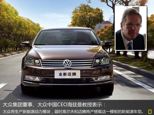 大眾未來三年將投資超過98億歐元在華擴產,其中就包括提高對新能源汽車的研發和市場推廣,并將計劃于2018年前導入15款新能源車型。近日大眾集團董事、大眾中國CEO海茲曼教授與網通社社長李安定先生進行了會晤,在談及未來在華新能源新車型規劃的話題時,海茲曼教授表示:“未來大眾汽車將進行新能源動力模塊化的生產,屆時高爾夫和邁騰車型上將搭載該模板,并投產其對應的新能源車型。”