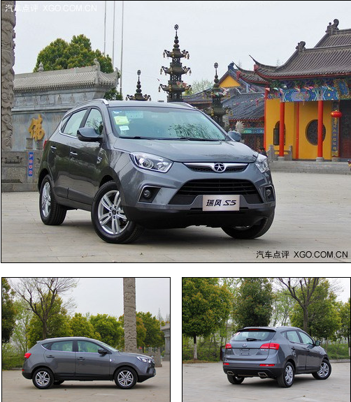 外觀方面:乍眼看,你會發現瑞風S5在外形造型上與北京現代ix35十分相似,不過在細節方面,瑞風S5加入了更多的原創的元素,特別在前/后燈組、排氣管罩造型上。在車身尺寸上,瑞風S5的長寬高分別為4475mm×1840mm×1680mm(最低配高為1670mm),軸距為2645mm。