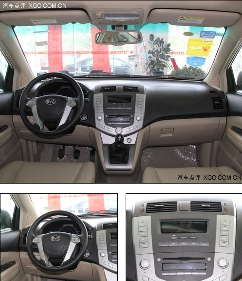 內飾反面:2013款比亞迪S6的中控臺設計與老款相比并沒有區別,造型依舊以簡潔大氣為主,銀色裝飾條的應用更為車內增添了時尚氣息。在內飾配色方面,除了上深下淺的居家風格外設計外,勁悅版車型還提供了深色內飾供消費者選裝。