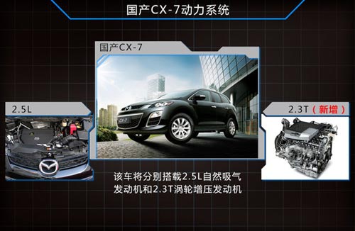 目前馬自達(dá)在華車(chē)型均搭載自然吸氣發(fā)動(dòng)機(jī),隨著CX-7即將在一汽馬自達(dá)投產(chǎn)這種局面將會(huì)被打破。對(duì)此,馬自達(dá)(中國(guó))CEO渡部宣彥先生在接受網(wǎng)通社采訪時(shí)表示:“馬自達(dá)CX-7明年上半年國(guó)產(chǎn),一汽馬自達(dá)國(guó)產(chǎn)。”新車(chē)搭載的2.3T發(fā)動(dòng)機(jī)較現(xiàn)款2.5L引擎在動(dòng)力方面大幅提升,2.5L引擎則會(huì)作為入門(mén)車(chē)款的動(dòng)力匹配。