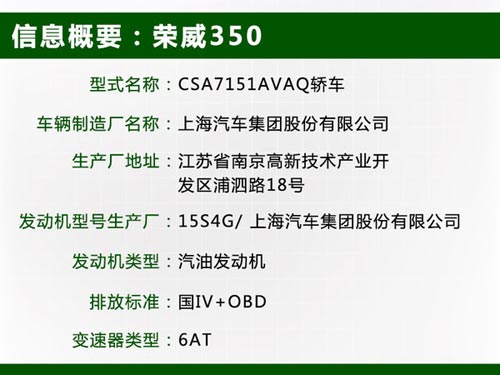 上汽乘用車在今年廣州車展期間正式推出了MG5 1.5T車型,與其同平臺的榮威350也將緊隨其后發布增壓版本。對于后者的推出時間上汽集團乘用車公司榮威品牌市場運營部總監劉濤先生表示:榮威350的1.5T車型將于2014年上市。近日網通社從國家環境保護部了解到:榮威350增壓版車型將采用與MG5相同的15S4G 1.5L增壓發動機,與之匹配的則是6速手自一體變速箱。
