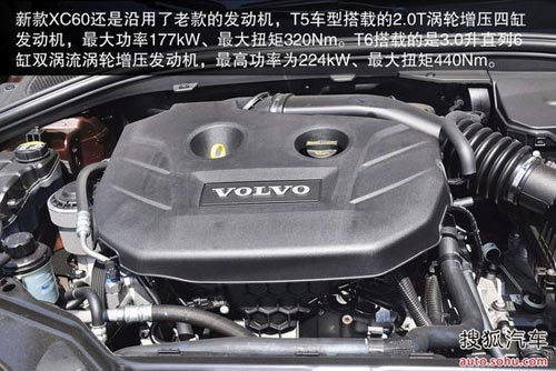 沃爾沃XC60 T5車型并未搭載S60/V60的直列5缸渦輪增壓發(fā)動機,依然還是直列4缸渦輪增壓發(fā)動機,最大功率177kW,最大扭矩320Nm。與之匹配的是Powershift6速雙離合變速器。T5車型則全部未配備四驅(qū)系統(tǒng)。