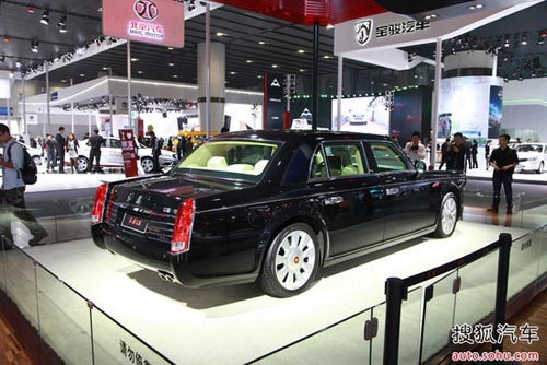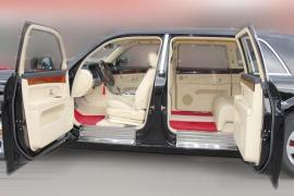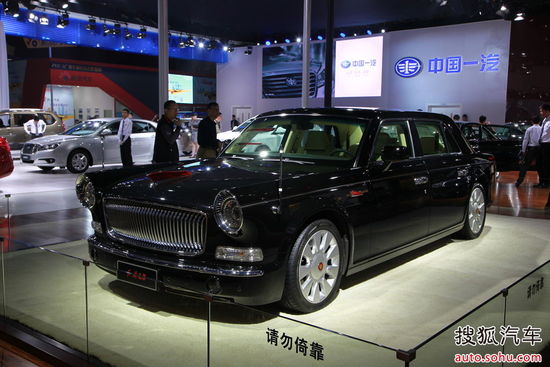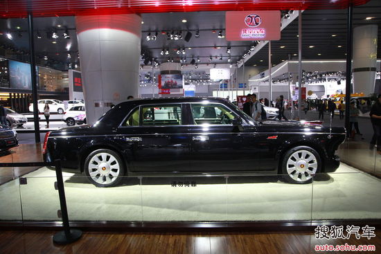 信息點:軸距3900mm,比勞斯萊斯幻影EWB加長版還長,整備質量3.15噸,造型沿襲檢閱車,主打高端接待、國賓用車市場。
